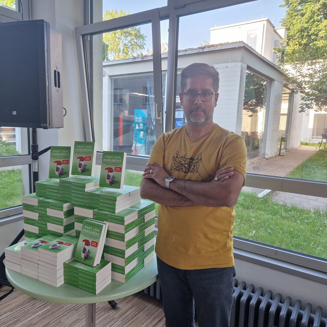 Am Ende der Veranstaltung beantwortete Hasnain Kazim unsere Fragen an ihn. Danach wurden die Leseexemplare verteilt und er hat sie anschließend geduldig signiert. Während die Azubis in einer langen Schlange auf ihre Unterschrift warteten, haben einige die Zeit genutzt, um schon mal in «Post von Karlheinz» reinzulesen.