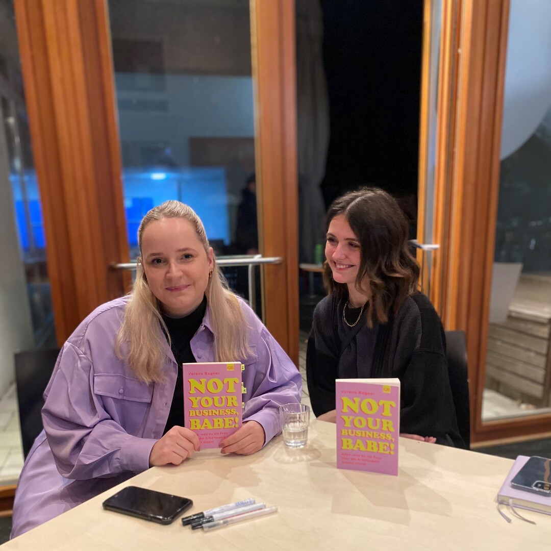 Rund 100 Schüler:innen folgten der jungen, österreichischen Autorin bei ihrer ersten Lesung von ihrem Buch «Not Your Business Babe», wobei sie sich sicherlich kein besseres erstes Publikum hätte wünschen können.Bogner erzählte wie aufgeregt und zu gleich erleichtert sie sei, dass der lange Prozess von der ersten Idee bis hin zu dem fertigen Buch endlich vorbei sei und sie auf jeden Fall durchdrehen wird, sobald es dann endlich auf dem Markt ist.